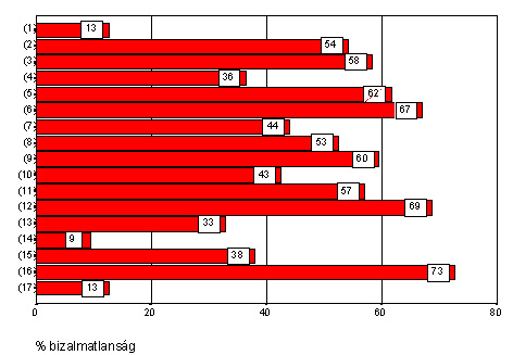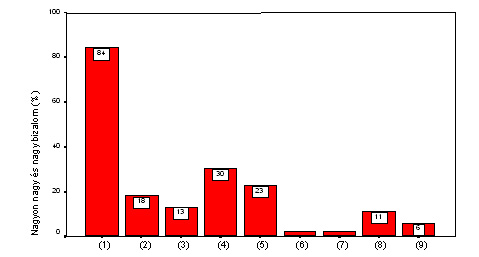 Ily módon, az elsô kritérium alapján - csoportközi, minél homogénebb klasszterek szerkesztésével, valamint a standard eltérések csökkentésével - bizonyos, többségében román, illetve többségében magyar nemzetiségű vidékek határolhatók el, az ott élô magyar lakosság részarányának függvényében.