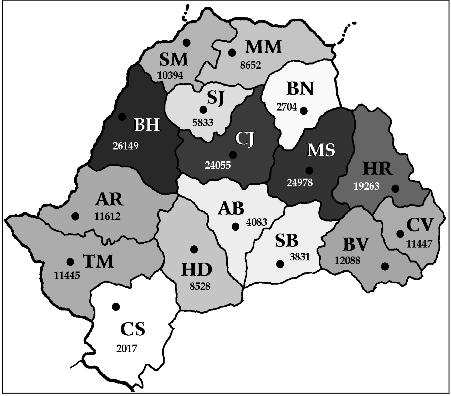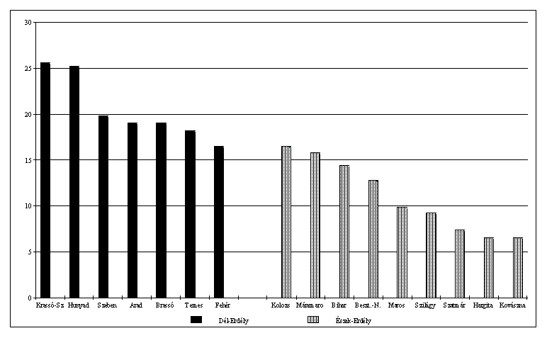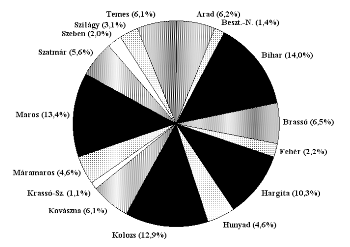 1 Magyari Nándor László adatai alapján (Magyar Hírlap 2002. július 13.) nekem az jött ki, hogy a 16 erdélyi megyében összesen 68 469 ilyen személyt vettek nyilvántartásba. Ha ezen belül a magyarok aránya megyénként megfelelne annak, ahány százalékot a magyarok tettek ki 1992-ben az illetô megyében, akkor ez 13 727 magyart jelentene. Ezt a becsült számot azonban alighanem a minimálisnak kell tekinteni, hiszen az ilyen státusúak között a magyarok aránya valószínûleg nagyobb.